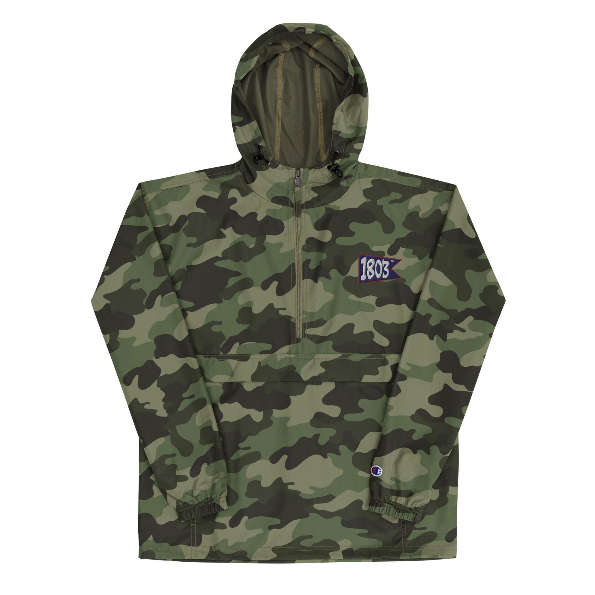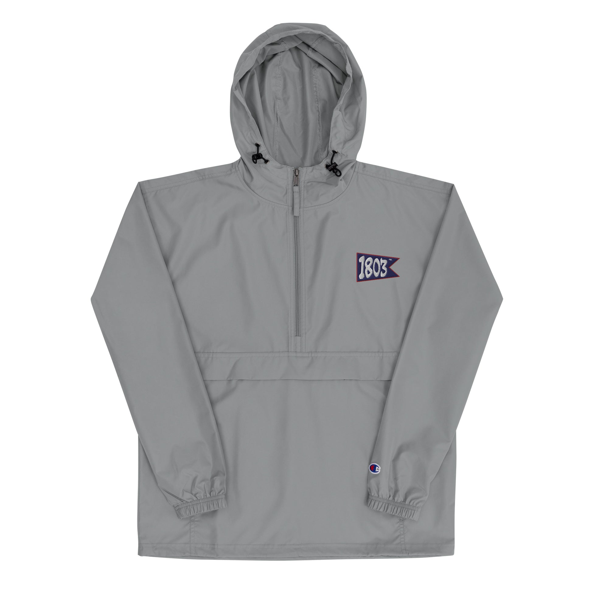 Protect yourself from the elements with this 1803 Golf packable jacket. This wind and rain-resistant polyester jacket with a detailed 1803 Golf Flag embroidery has a hood, front kangaroo pocket, and zipped pouch pocket which you can pull out and use to scrunch the jacket into for convenient storage.